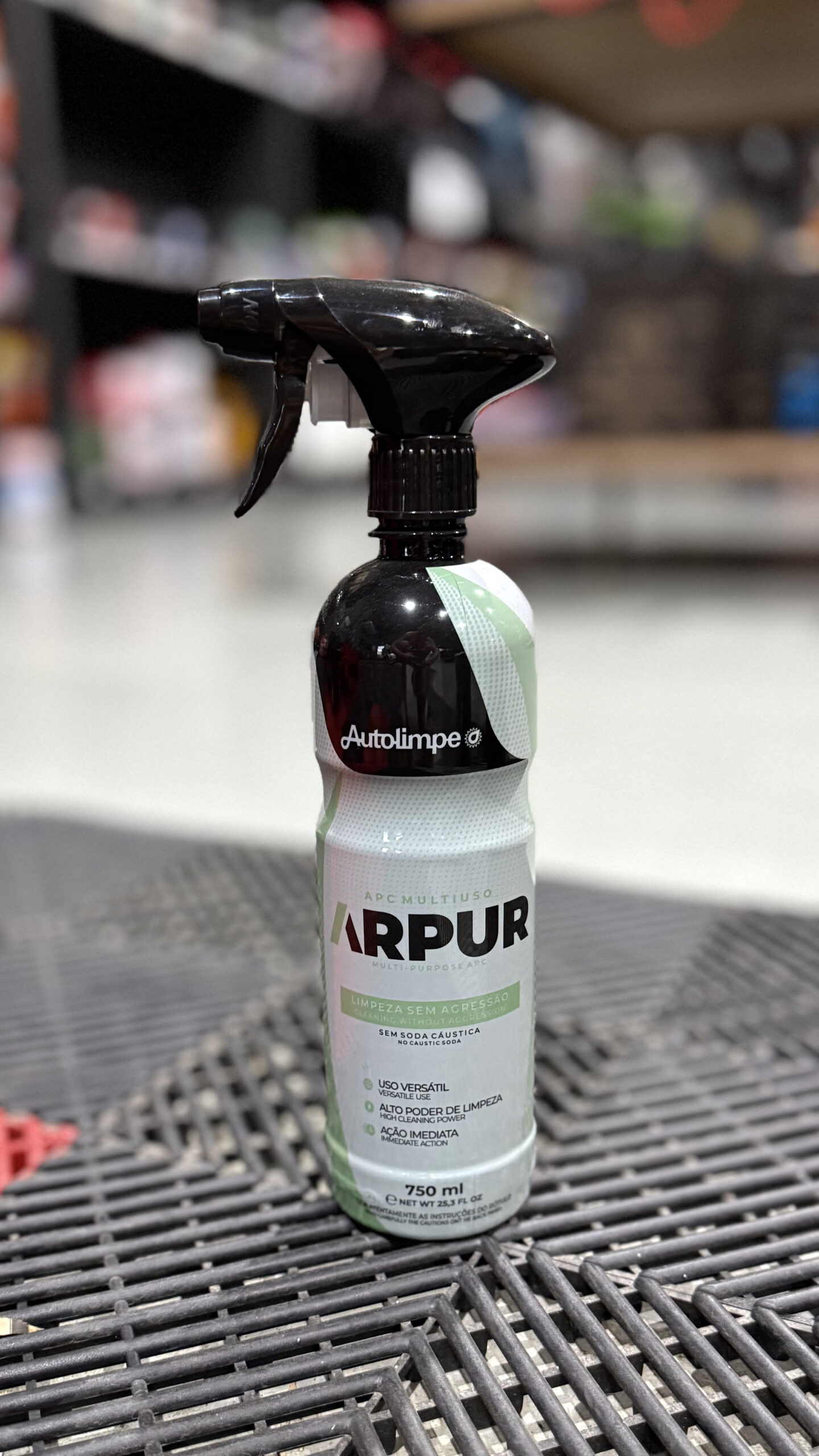 O ARPUR é um poderoso limpador de uso geral, desenvolvido para facilitar a limpeza em diversas superfícies, como painéis, couro, carpetes, estofados, vidros e borrachas. Com fórmula balanceada e alta performance, ele remove com eficiência sujeiras difíceis como óleo, poeira, manchas e resíduos diversos. Ideal para uso automotivo, doméstico, industrial e profissional, proporciona versatilidade e economia.