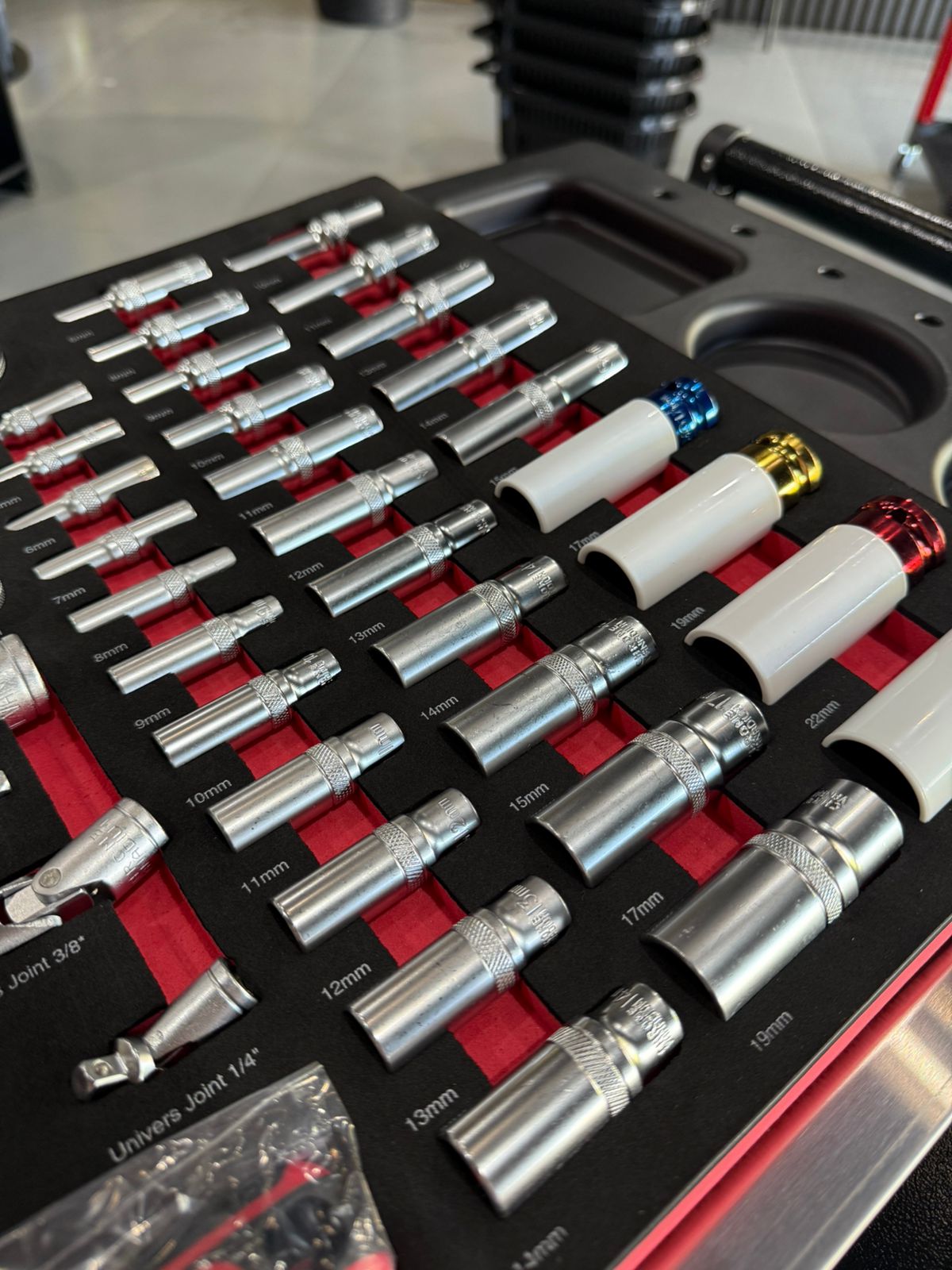 • Soquetes 3/8”: 6, 8, 9, 10, 11, 12, 13, 14, 15, 17, 19 mm