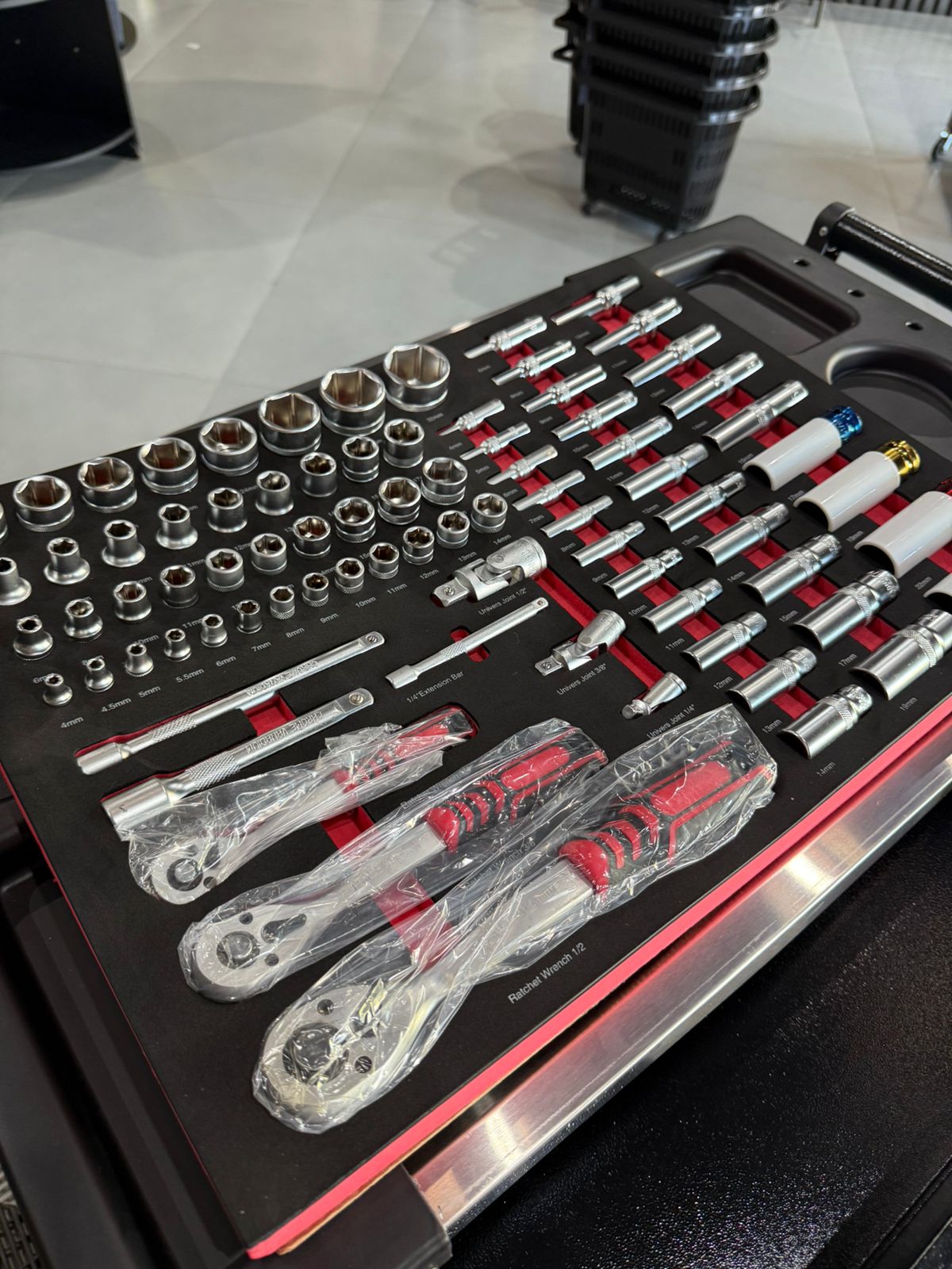 • Soquetes 1/4”: 4, 5, 6, 7, 8, 9, 10, 11, 12, 13, 14 mm