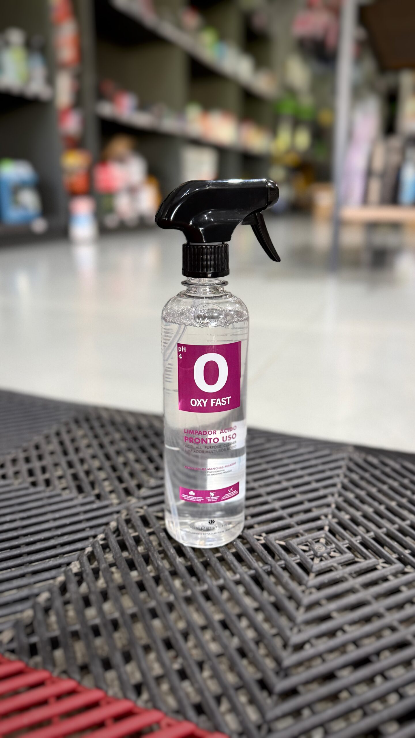 Aplique: Borrifar o Oxy Fast diretamente sobre a mancha ou superfície a ser limpa.